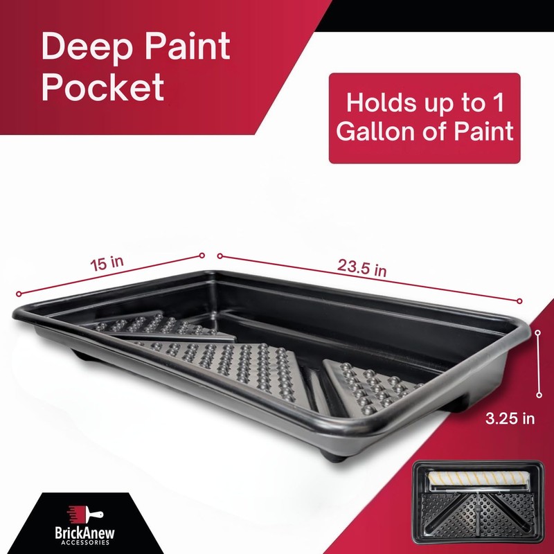 - Heavy-Duty Tray: High-capactiy paint tray with 22" well and textured loading grid, designed for large rollers to hold and distribute paint evenly while minimizing spills and mess.