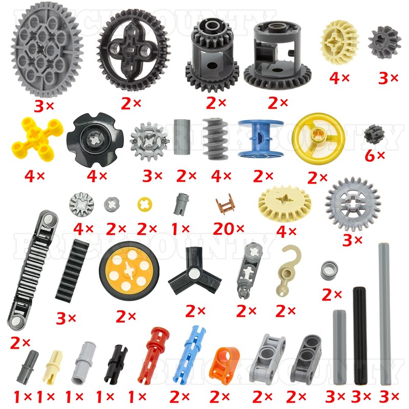 BrickBounty 116 Pcs Technical-Part Compatible with Technic Building Block Set, Pulley Tires Axles Gears and Chain, MOC Replacement Kit for Technical Building Blocks