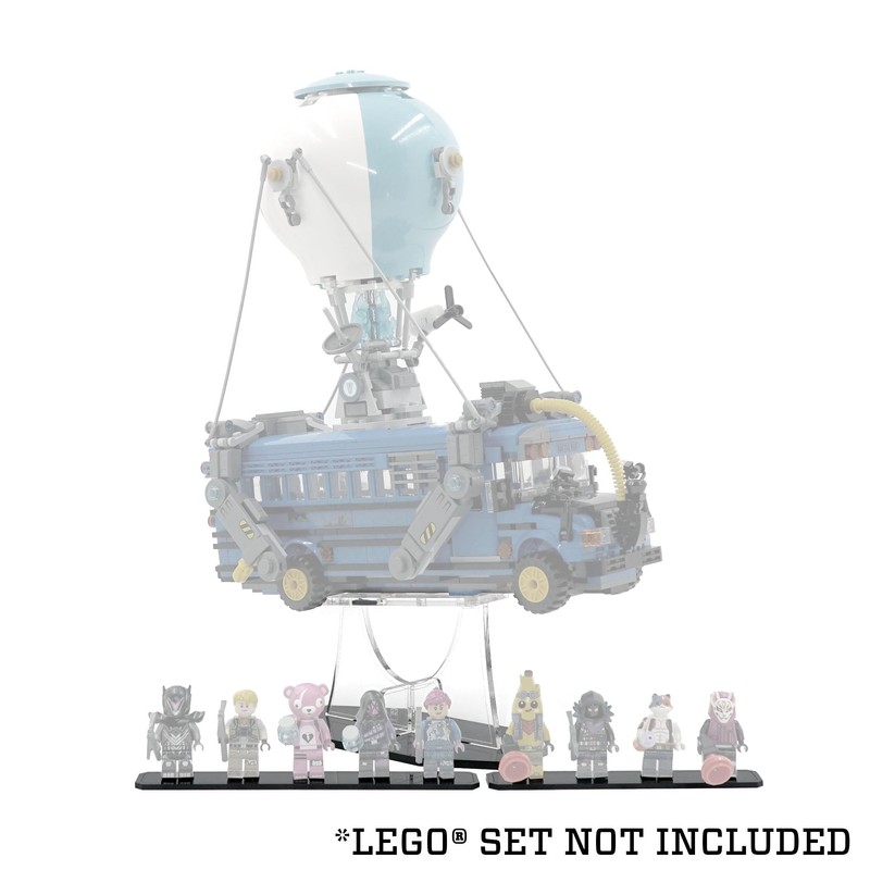 Upgrade your LEGO Fortnite collection with this display stand custom-designed to work with LEGO set 77073 - Battle Bus. Manufactured from high-quality 4.5mm acrylic. Ships with a protective coating that should be removed prior to assembly. LEGO set for display only, not included with purchase.