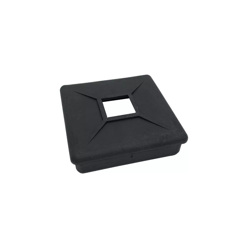 One rubber bumper plugs for a 4" square bumper. Cap has square hole in middle for air venting and to use for removing plug. This style bumper plug is used often on RV and trailers. Fits standard 4" square bumpers and will conceal sewer hoses.