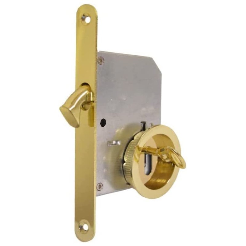 bricoleva.it Sliding Door Lock Set Round Rosette with Key Handle with Lock for Sliding Door (Color Polished Brass)