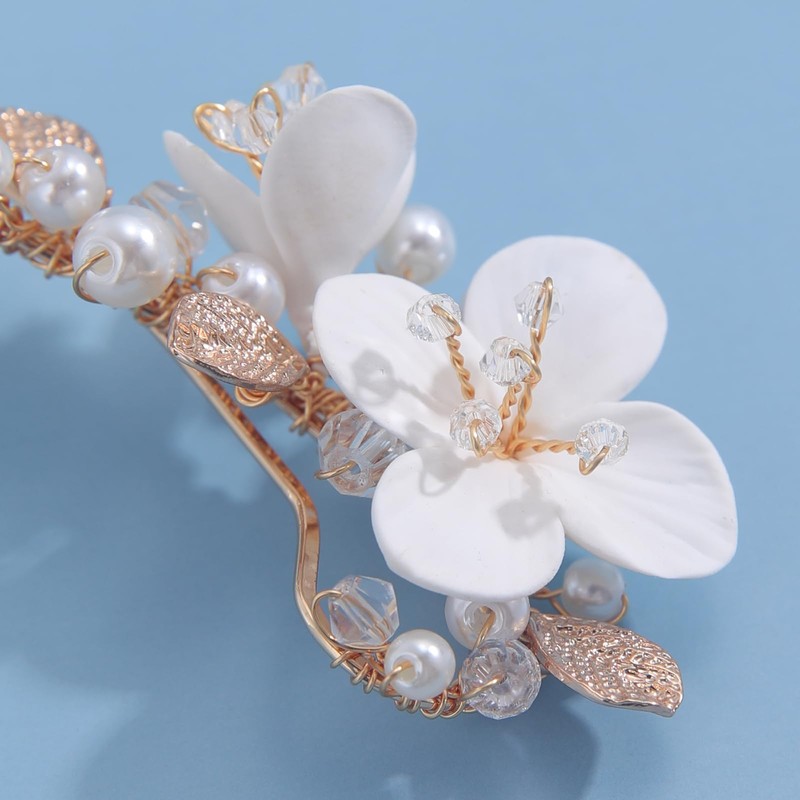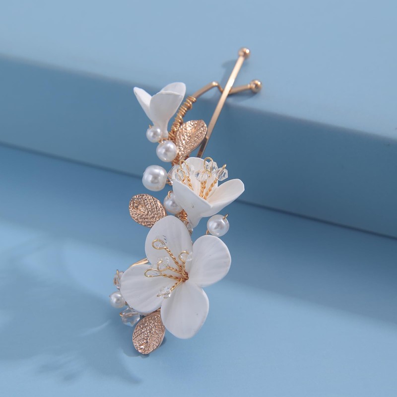 Bridal Hair Accessories Wedding Hair Clip Handmade White Flowers Pearls Hair Clip Gold Hair Accessories for Brides Wedding