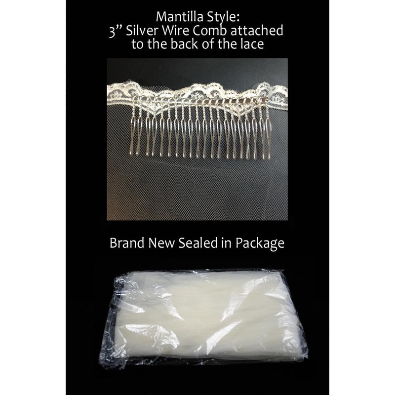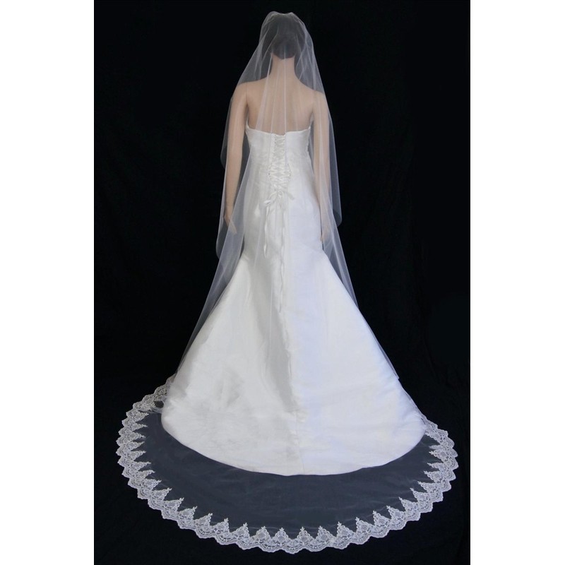 Bridal Mantilla Veil Diamond (Off) White 1 Tier Long Cathedral Length Lace Edge