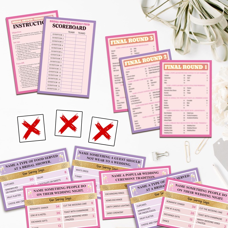 Our friendly feud game cards can mobilize the enthusiasm of guests and liven up the party atmosphere, making the party relaxed and interesting. Make party unforgettable with this engaging and festive game that will keep everyone talking long after the last round is played!