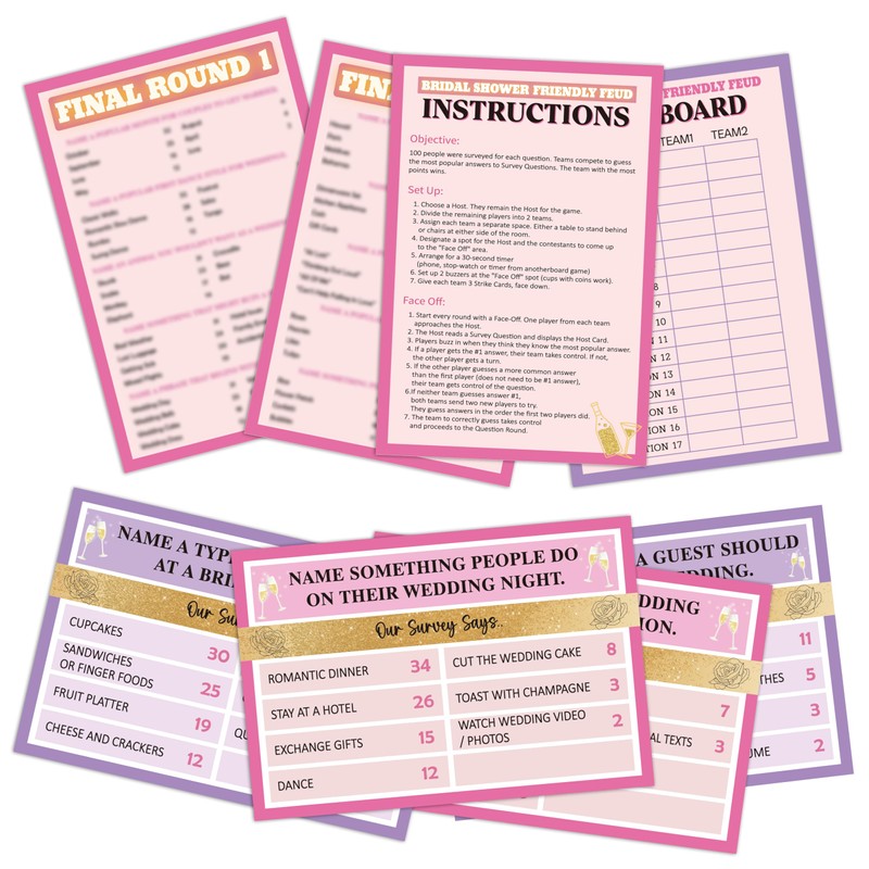 - Our friendly feud game cards can mobilize the enthusiasm of guests and liven up the party atmosphere, making the party relaxed and interesting. Make party unforgettable with this engaging and festive game that will keep everyone talking long after the last round is played!