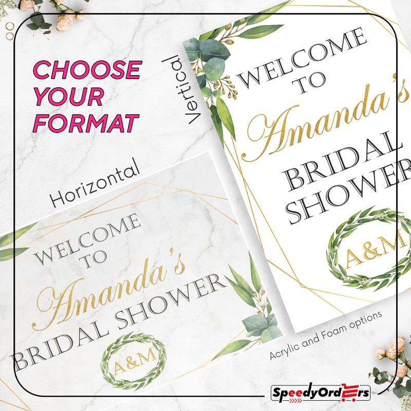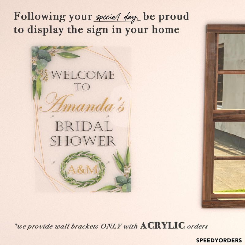 - SIZE AND MATERIAL: All our designs are manufactured with the finest quality materials. This Bridal party welcome sign is offered in different sizes and variety of materials to choose from such as Paper (A DIY printed poster only), PVC Board (Stronger than foam boards, Will arrive ready to use), and Crystal Clear Acrylic (Elegant transparent acrylic signs, will arrive ready-to-use)