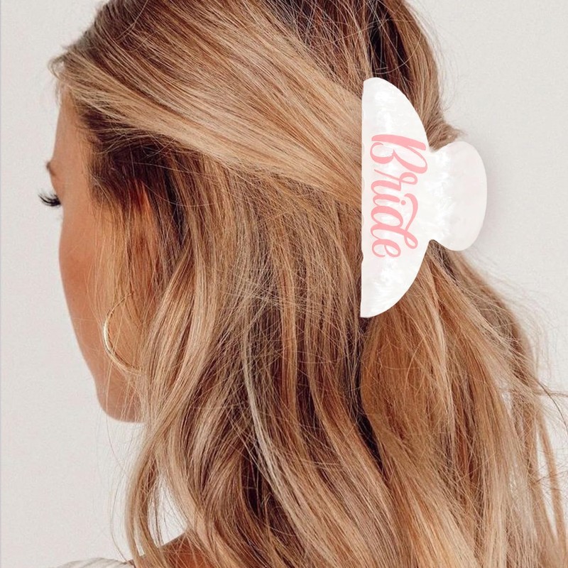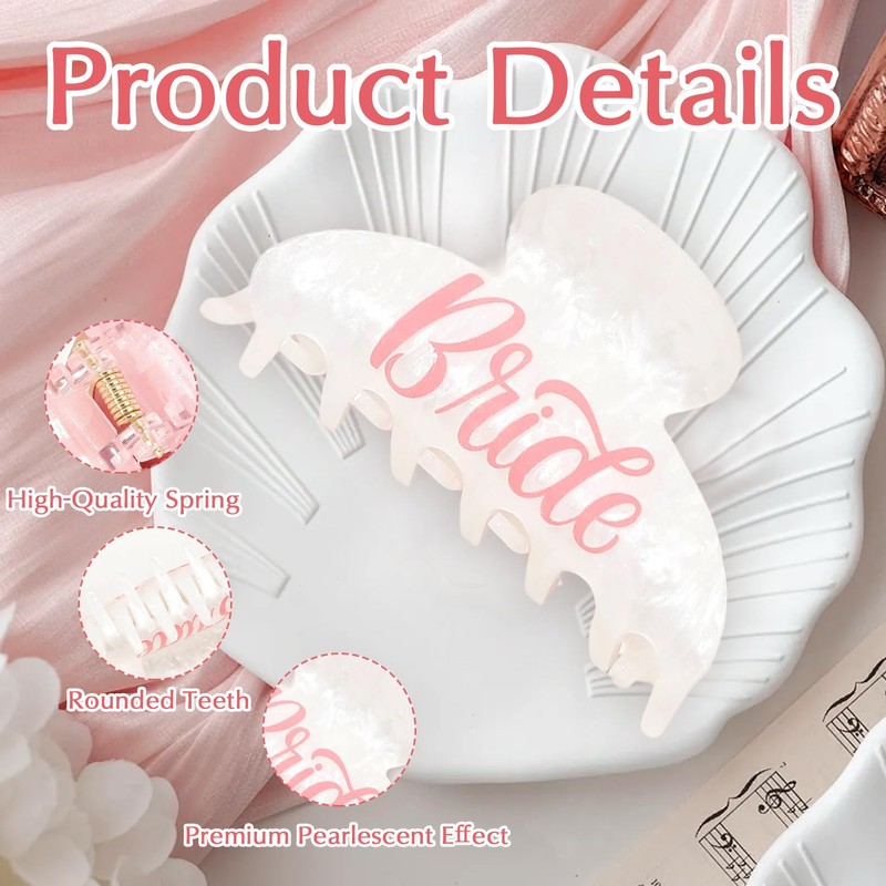 - 【High-quality Materials】This hair claw clip is made of high-quality acrylic material, with a delicate and smooth touch. It is decorated with an exquisite "Bride" print, highlighting the unique charm of the bride, and its exquisite craftsmanship ensures its excellent durability.