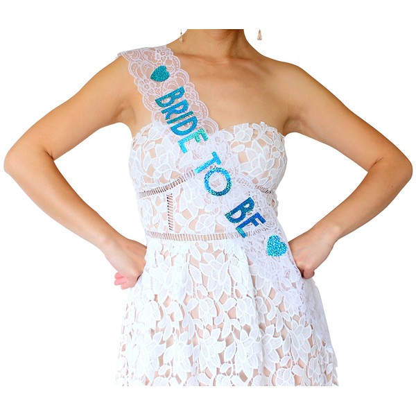 Bride to Be Lace Sash - Bachelorette Party, Bridal Shower & Wedding Party Accessory (White & Light Blue)