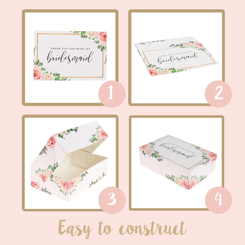 Our HIGH-QUALITY bridesmaid thank you boxes provide elegant (and sturdy!) storage for all your bridesmaid gifts. Perfect for your bridesmaid proposals or thank you gifts on the big day, your best girls will be sure to be IMPRESSED!