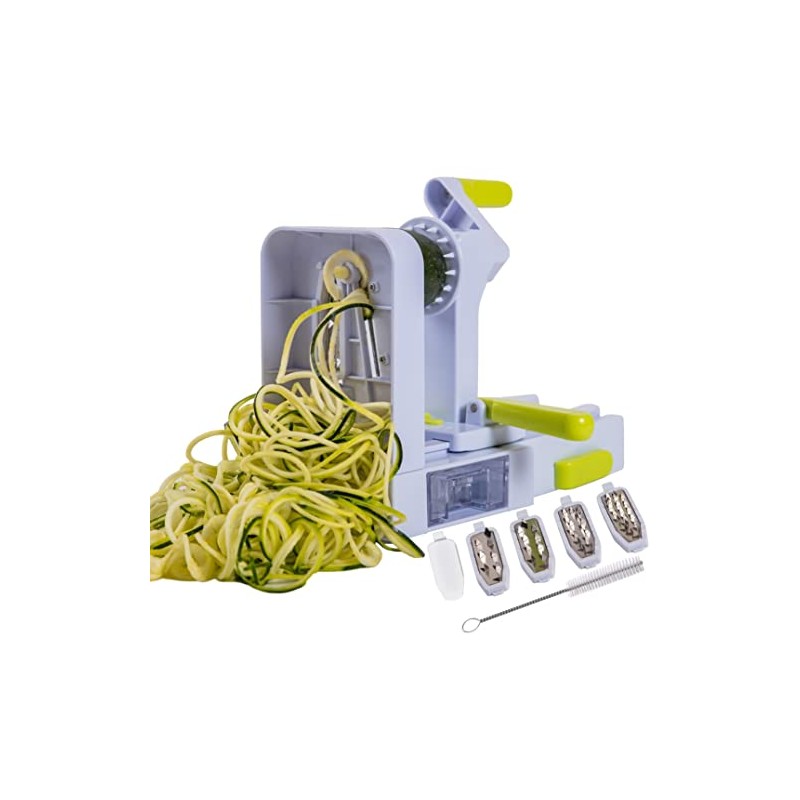 • VERSATILE & COMPACT DESIGN: The Brieftons QuickFold 5-Blade Spiralizer is designed to be versatile, powerful & compact at the same time. It can easily be folded to save space when not in use & unfolded for use again all in a matter of seconds ✅ 5 clearly labeled blades to make a wide variety of cuts (2/3/5/7mm & ribbons) ✅ Oversized, foolproof suction pad for enhanced stability ✅ Blade caddy for safe blade storage ✅ Less waste with a smaller corer ✅ Designed to be dead easy to use/clean & store.
