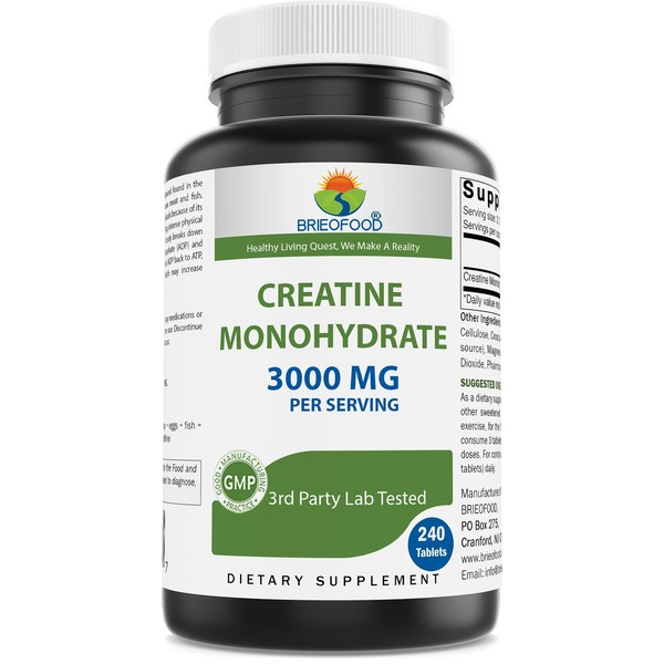 Brieofood Creatine Pills 3000 mg per Serving - 240 Tablets - 3rd Party Lab Tested for Purity & Quality - Helps Improve Athletic Performance