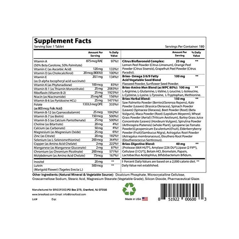 Brieofood Multivitamínico Diario Hombres 180 Tabletas