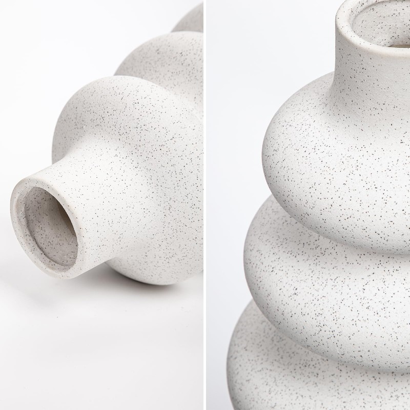 - UNIQUE BOHO VASE: A sculptural work of art, the rounded edges of this extraordinary vase are colored with a slightly-textured, matte white finish. A natural addition to your side table, shelves, or credenza, this vase is sure to turn heads. Crafted from Ceramic. Note: Glazed on the inside, you can style this vase with or without water.