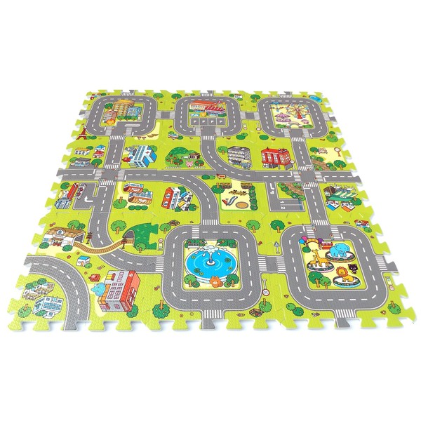 - Colourful city puzzle mats made of durable, odourless EVA foam.