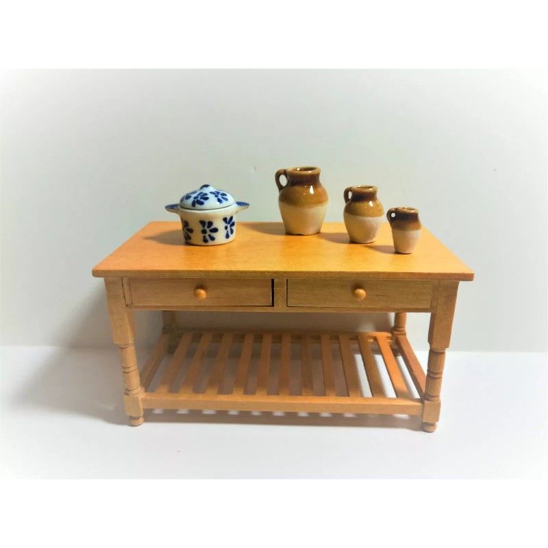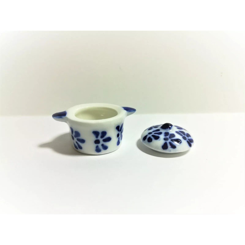 Bright deLights Dollhouse Miniature Large Glass Stock Soup Pot with Lid Blue & White 1:12 Scale