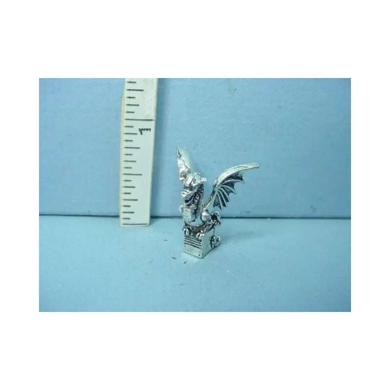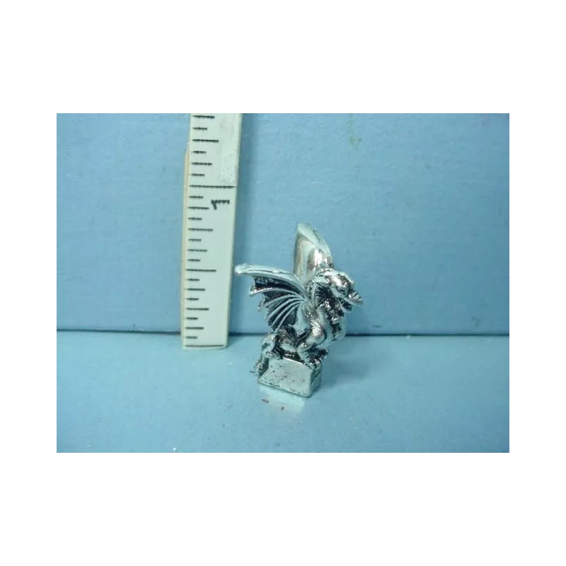 This is a 1" (1:12) scale silver tone dragon statuette from Bright Delights. Measures approx 7/8"T x 3/4"W x 5/8"D, metal.