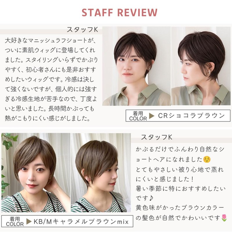 • Product Description: This wig is a slightly cool type of "Bare Skin Wig" that is perfect for relaxing. Have you ever felt stressful when wearing a wig, such as tightness, hot or uncomfortable feeling? This wig has been developed to reduce the stress caused by wearing a wig. It is stress-free as if you are wearing bare skin. Highlights: "Material" and "Wear". In addition, we often hear the voice that is not good with cold fabric that is too strong, and the chemical derived fibers will cause skin to be rough. Uses recycled fibers that are made from cotton and natural cotton linters, which are gentle on the skin to reduce the feeling of coolness. In addition, this short wig has been carefully packed with attention to detail, such as the amount of fluffiness has been calculated to make it easy to produce volume with the overall hair and cut lines that make the back of your head