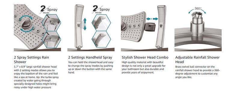 The BRIGHT SHOWERS Dual Shower Head Combo Set is the perfect addition to any bathroom. This set comes equipped with two spray settings, providing maximum comfort and relaxation during your shower. With a fixed and handheld shower head, you can easily switch between the two at your convenience.