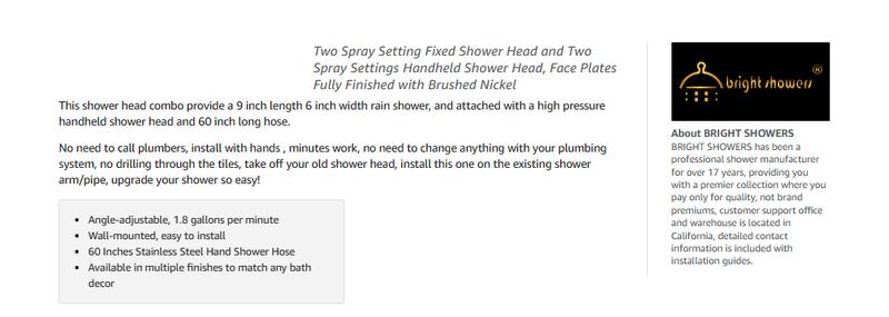 BRIGHT SHOWERS Dual Shower Head Combo Set with Two Spray Settings Each, Fixed and Handheld Shower Heads, Premium Face Plates Fully Finished with Brushed Nickel - Color: Chrome