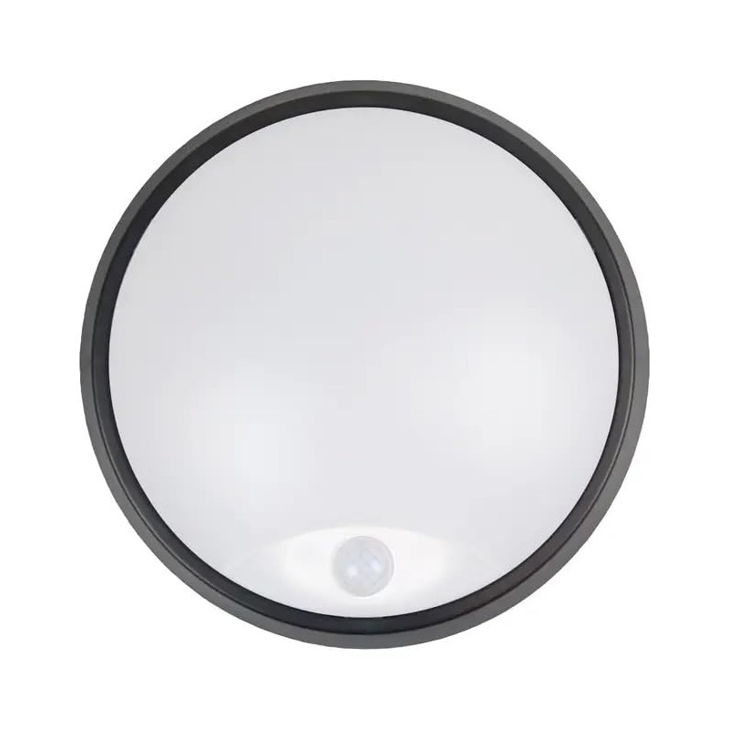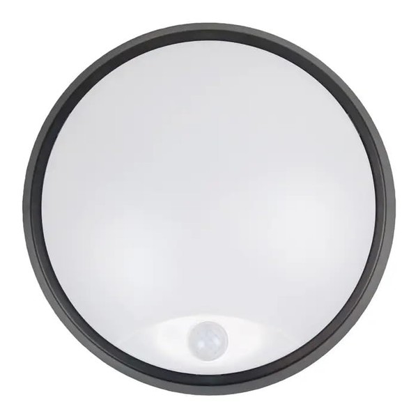 Bright Source Outdoor 10w LED Black Circle Bulkhead Black, IP44, 1000lm, Black, PIR Motion Sensor, 3CCT 3000K 4000K 6000K