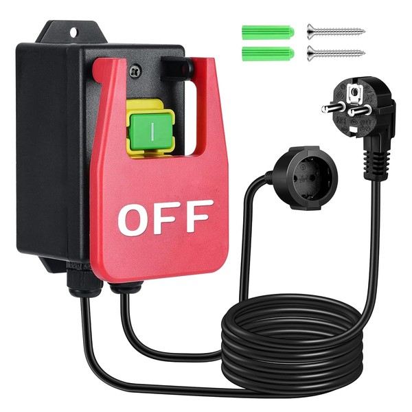 BrightArk Single-phase on/off switch, 230 V, emergency stop switch, safety switch with socket, machine switch for quick switching off of milling table and other electrical devices