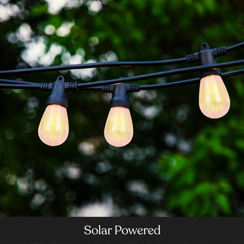 We make our bulbs out of durable plastic shells. They won’t shatter like ordinary glass bulbs, and can be displayed with complete confidence that they won’t break. A generous 20'' of space in between bulbs gives you room to decorate on a garden roof, across a gazebo, or in an open-air bistro and style the strands how you like. The total length of the LED lights strand is approximately 27 feet across, 20 feet for the spread of the bulbs, and 6.5 feet for the cord extending to the solar panel.
