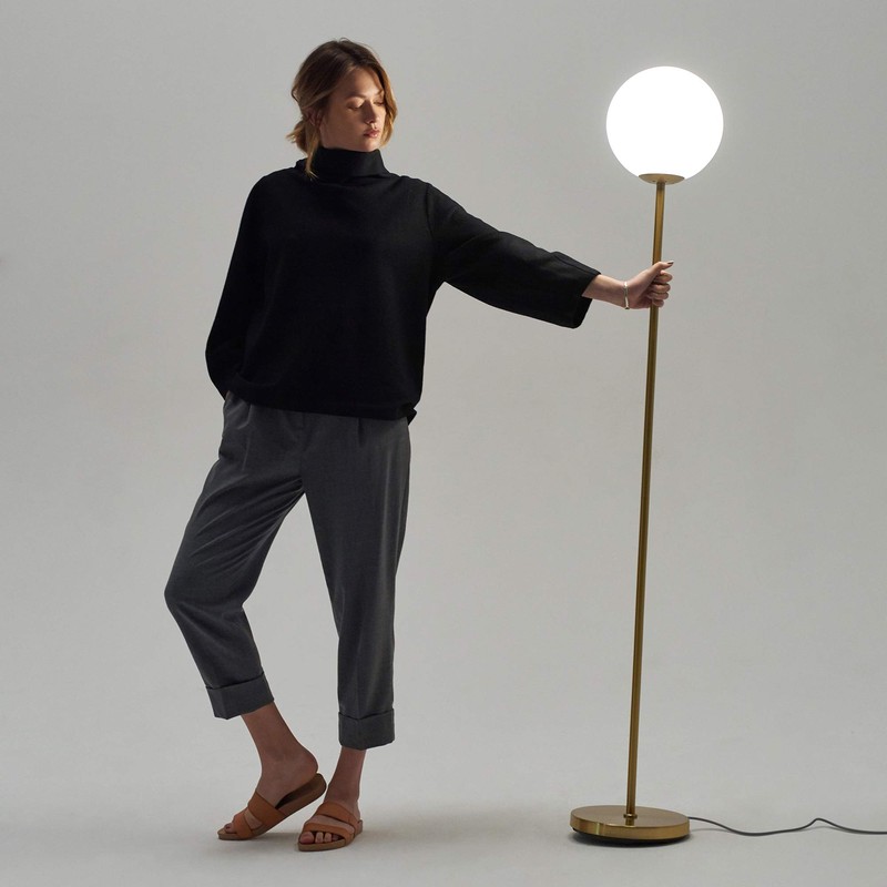 - Stylish Living Room Decor: The Brightech Luna floor lamp. This standing lamp has a unique and classy design that will turn it into a surefire conversation piece for all your guests. Its warm light and elegant design make it an excellent lamp for living rooms. It will match a variety of decors (such as modern bohemian (boho), mid-century modern, contemporary, vintage, farmhouse, etc.). Amaze your guests with this beautiful, frosted glass globe lamp. Height: 65 in. 110v Outlets