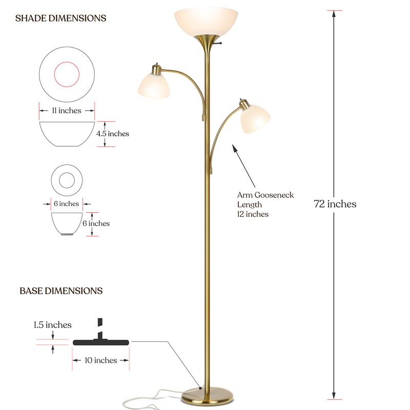 Capable of both mood and task lighting, Brightech's Sky Dome Double LED Torchiere Floor Lamp solves your home or office needs brightly and efficiently without breaking a sweat or your budget. Our modern floor lamp casts an impressive warm white glow in any direction, providing more than sufficient light for a large bedroom. This lamp for living room burns cool - long-lasting LED lights don’t produce heat like the halogen or incandescent lighting of traditional Torchiere floor lamps. The included power-saving LED bulbs (9 watts on reading arms, 3-way bulb on main light- 6, 8, and 16-watt settings) stay cool, even as your living space bathes for hours in their light. Omni-directional, rotating head lets you angle the light for a greater light effect when desired. Adjust brightness level with a simple touch of a button featuring three dimmer settings. Effortlessly create the right amount of light at any given hour of the day, the dimmest setting can even be used as a night light!
