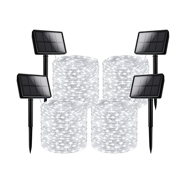 Brightever Solar Outdoor LED String Lights 288Ft Waterproof, 4-Pack Each 72FT 200 LED Solar Powered Fairy Lights with 8 Modes, Outside Twinkle Lights for Backyard, Balcony, Christmas (Daylight White)