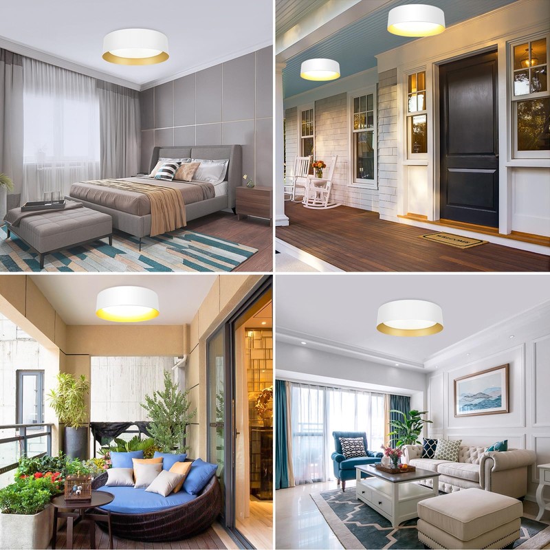 - 【Wide Application】Matching with most furnishing styles, The white and light gold LED Flush Mount Ceiling Light blends perfectly into any space while creating a relaxing ambience. Provide wonderful lighting for hallway, living room, bedroom, foyer, kitchen, entry, stairway, corridor, nursery room, kid's room, Dining room, powder room, hotel and office, etc. Great gift choice for your friends and family.
