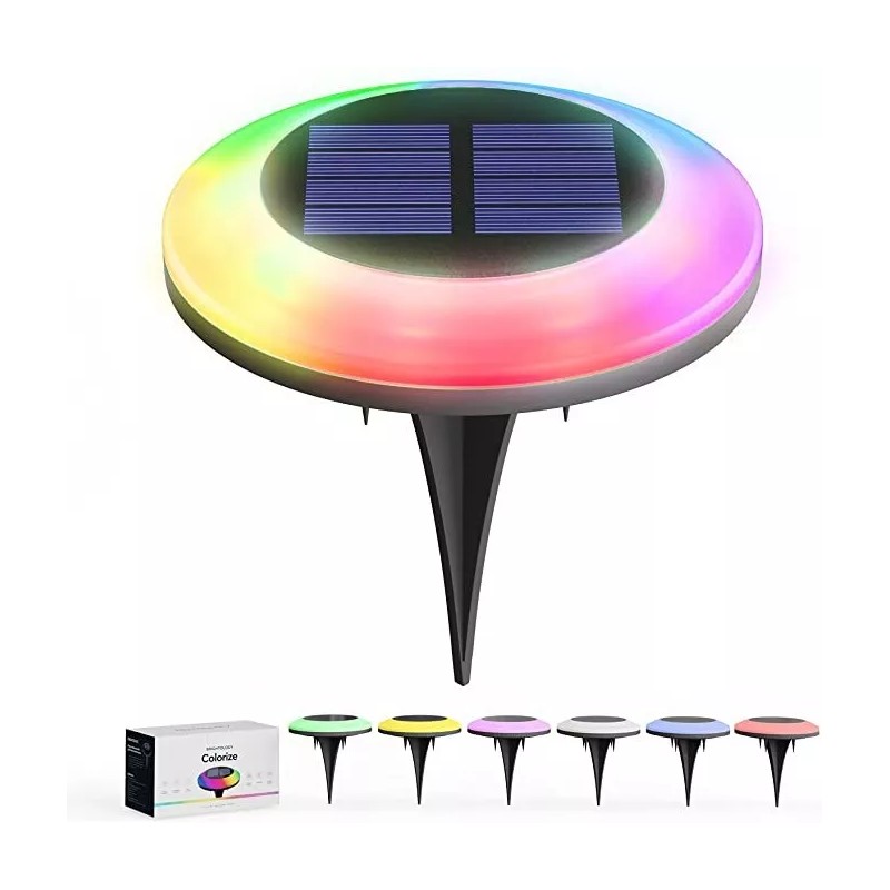 Colorize has 4 color options and 2 modes to match any mood you want in your yard. Flip a switch under the bottom of the ring to choose the color mode you want, and place them into the ground wherever you want.