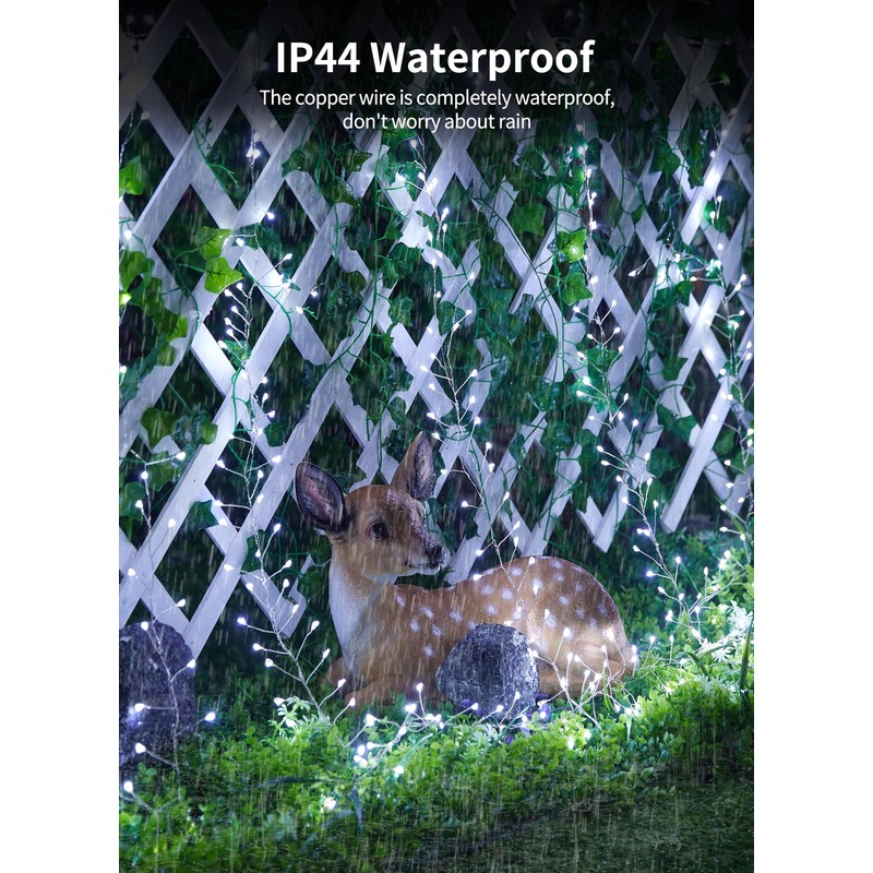 The solar led lights for outside made with bright LED bulbs and durable copper wire. The solar tree lights are IP65 waterproof.