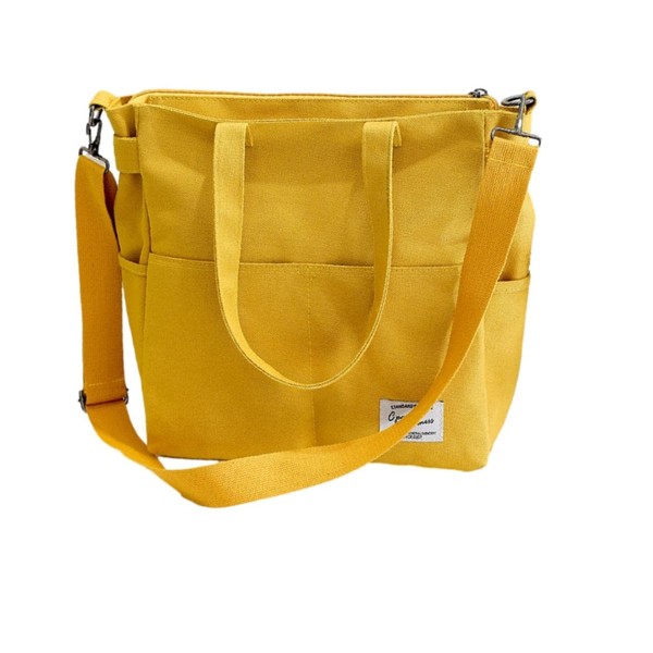 Brightrust Tote Bag, Large Capacity, Shoulder, Canvas, Diagonal, Hanging, Bag, Students, School, Commuting to Work, yellow