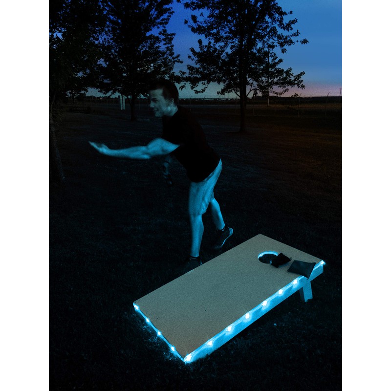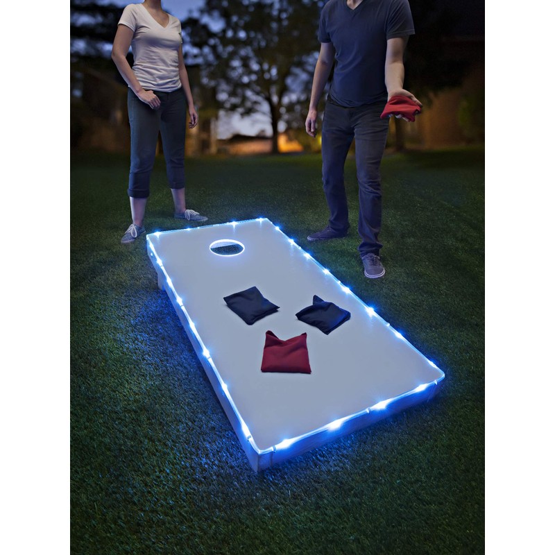 - LIGHT UP THE NIGHT WITH BRIGHTZ – Keep your cornhole game going after the sun sets with these toss board lights for the outside edge and hole of 2 regulation size or smaller sized boards that last for 24+ hours of glow.
