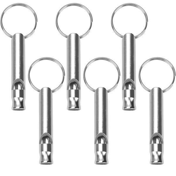 brileze 6 Pcs High Pitch Dog Whistles for Recall Professional Alloy Training Dog Whistle to Stop Barking With Keychain Control Pet Behavior Lightweight Loud Far Reaching Sound Whistle, Silver