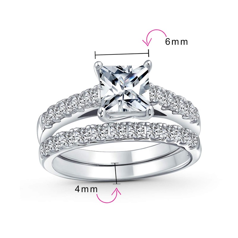 - Princess Brilliant Cut CZ Cathedral Set Engagement Wedding Ring Set rests artfully in a classic 4-prong solitaire setting with classic thin 1/2 eternity band is gorgeously adorned. PERSONALIZE – Engrave with a word, inspirational, letters, numbers, date, coordinates with script or block letters, our precision machine engraving ensures that your message is beautifully displayed. Click Customize Now to Order.