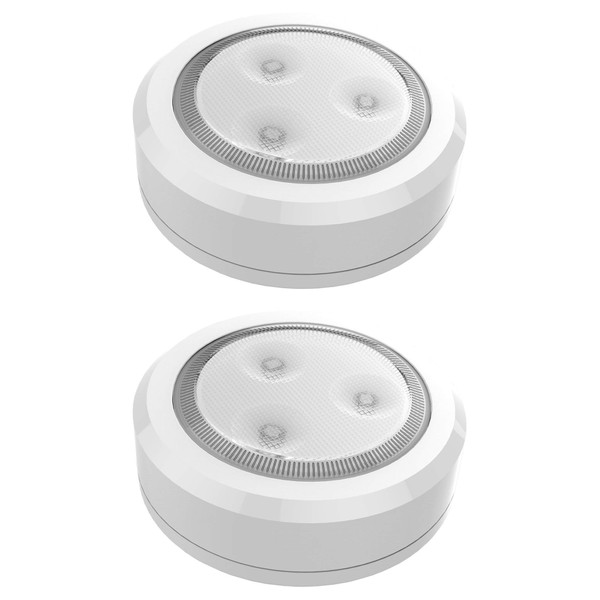 Brilliant Evolution Ultra Thin Wireless LED Touch Lights - Battery Operated Under Cabinet Lighting - Round Puck Lights for Closet, Countertop - Stick On Push Light for Home Decor - Pack of 2