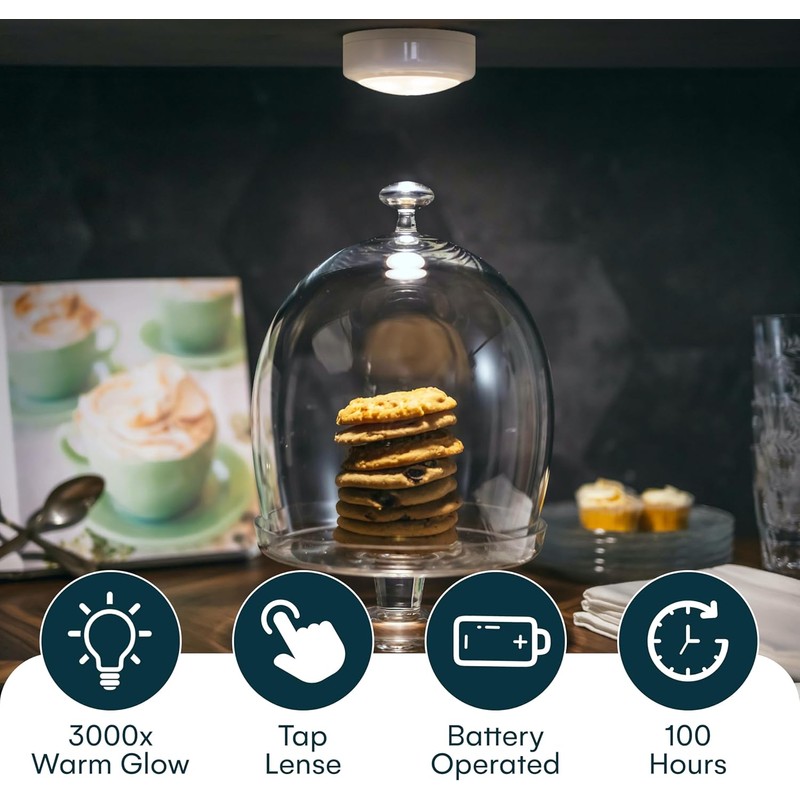 - 55 LUMENS - Super bright, long-lasting battery LED lights with a 3000K warm white glow, this makes these battery-operated wireless puck lights perfect for any room in your house including your kitchen, bathroom, pantry, closet, office, garage, and bedroom.