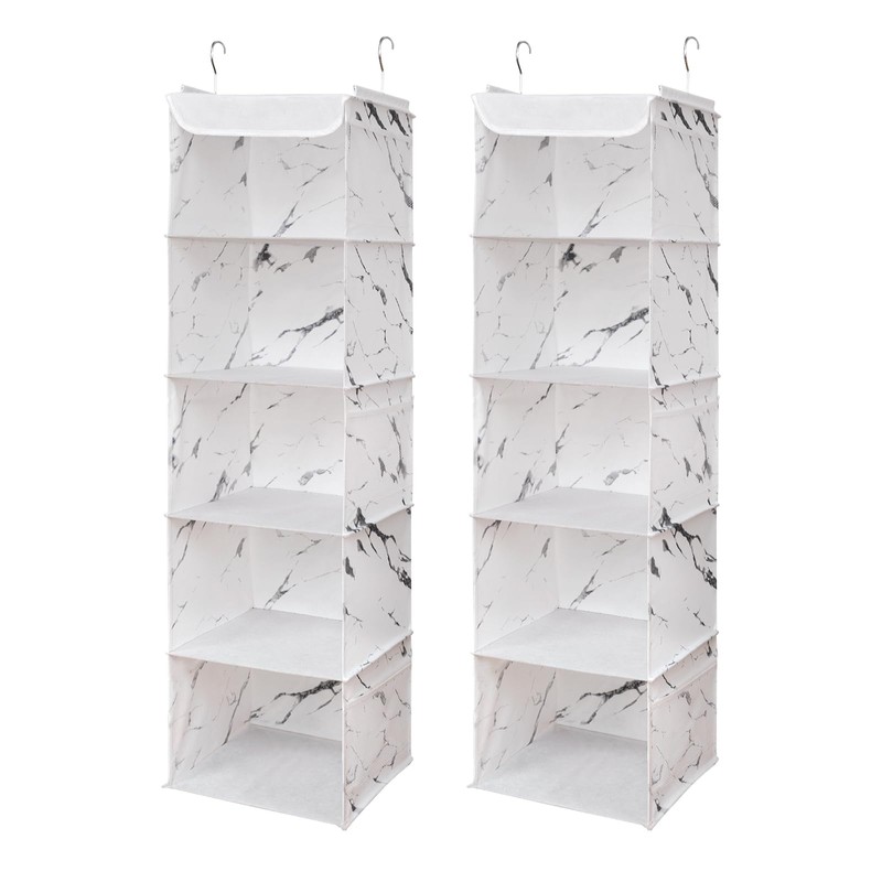 BrilliantJo 5 Shelves Hanging Closet Organizer, 2 Pack Hanging Storage with 6 Side Pockets for Clothes Shoes, 43"x12"x12"(Marblizing)