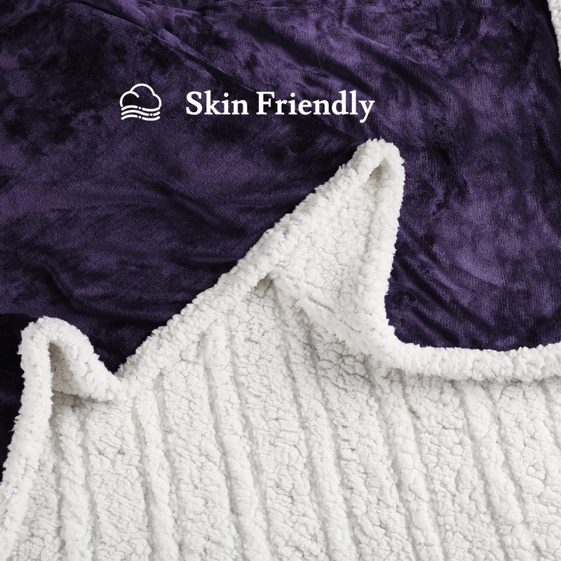 BRILLIO Electric Heated Blanket Flannel & Sherpa 50"x60" Throw Size - 4 Heat Levels, 10H Auto Shut Off, Fast Heating, Cozy and Comfortable, Warm Gifts, Machine Washable - Purple