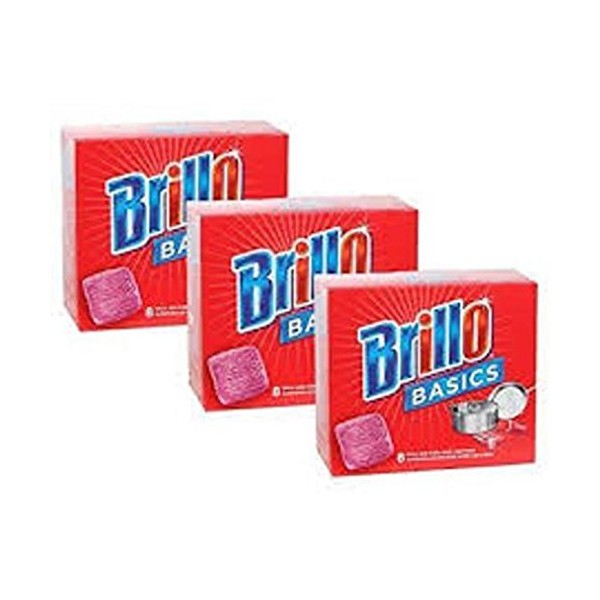24 (3 packs of 8) Brillo Basic Scouring Pads;Grease-fighting steel-wool soap