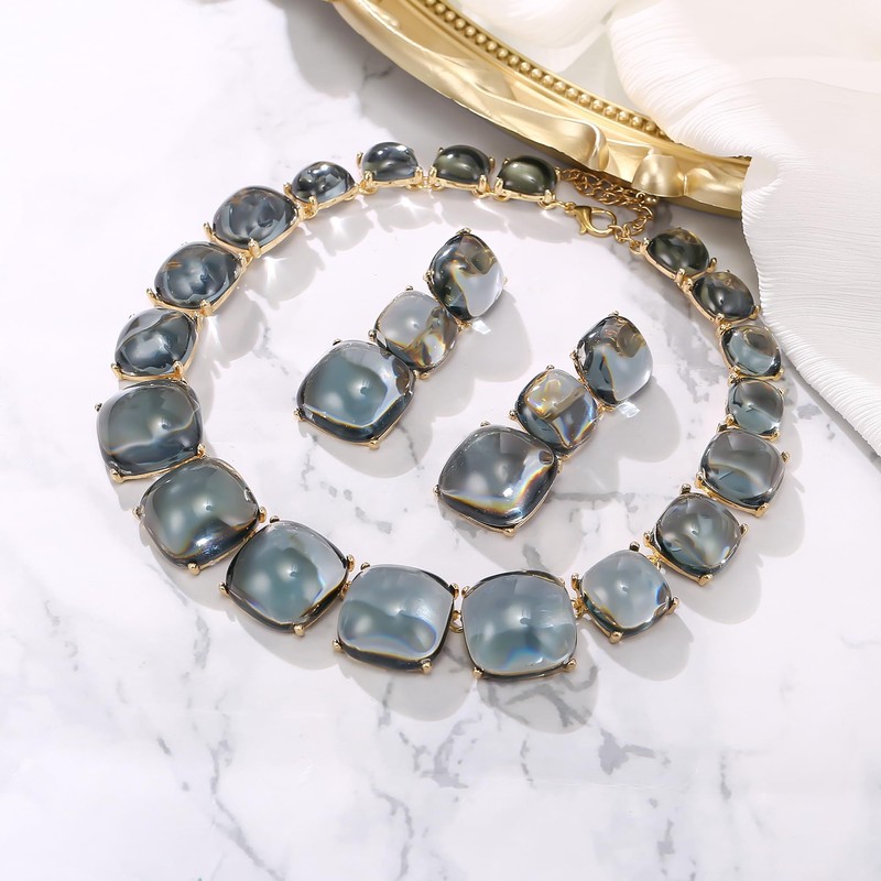 - Gift To Who You Love: Acrylic Beaded Bib Statement Necklace Drop Earrings Set - Wrapped in an exquisite gift box. Delicate and surprise gift idea for your best friend, lover, female friends, fiancee, wife, mother, daughter, grandma on Christmas, Birthday, Anniversary, Valentine’s Day, Mother’s Day.