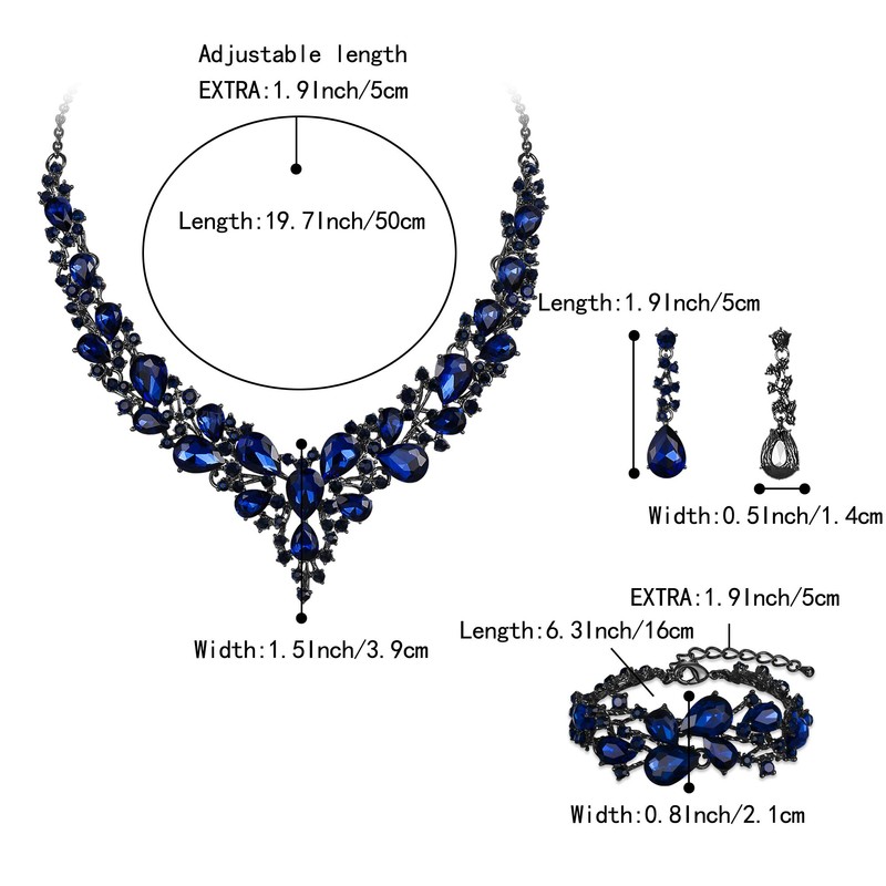 - Specifications & Size: Necklace: Pendant Size:8.2*1.5in; Chain Length (Adjustable): 19.7-21.6in. Earrings Size:1.9*0.5in;Each Piece Weight:5g.Bracelet Length:6.3-8.2in,width:0.8in. Total Weight: 78g.