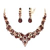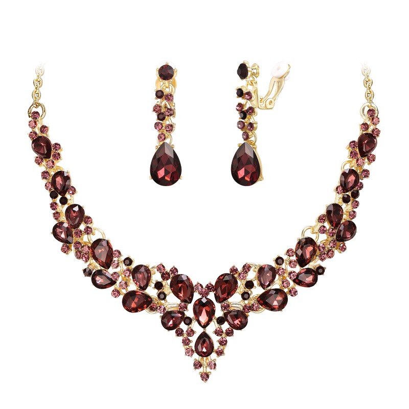 BriLove Bridal Jewelry Set, Sparkling Austrian Crystal Teardrop Cluster Statement Necklace Clip-on Earrings Set for Flower Maids Wedding Party Prom Deep Amethyst Color Gold-Tone