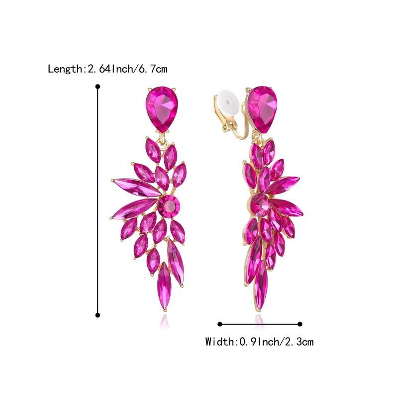 BriLove Clip-on Earrings for Women,Gorgeous Shiny Rhinestones Marquise Cluster Leaf Drop Earring for Wedding Party Prom Jewelry Accessories Hot Pink Gold-Tone