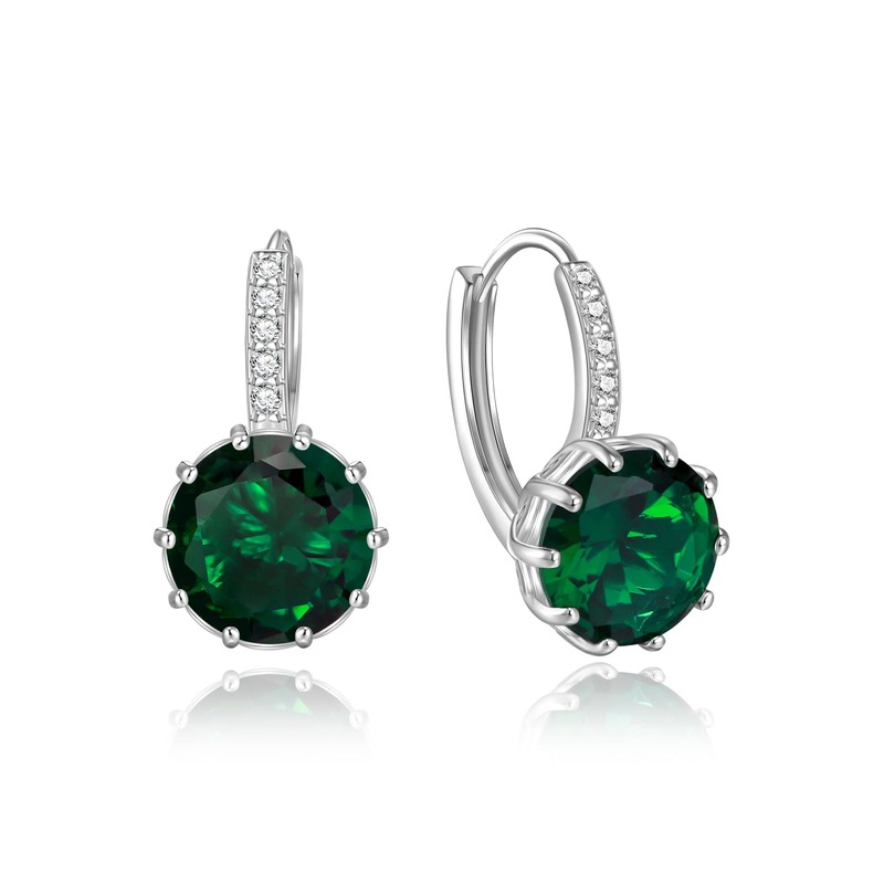 BriLove Round Cut Birthstone Drop Earring, Classic Cubic Zirconia Bridal Prom Hoop Dangle Earrings for Birthday Mother‘s Day Christmas for Women Hypoallergenic Jewellry Gift Green Silver-Tone