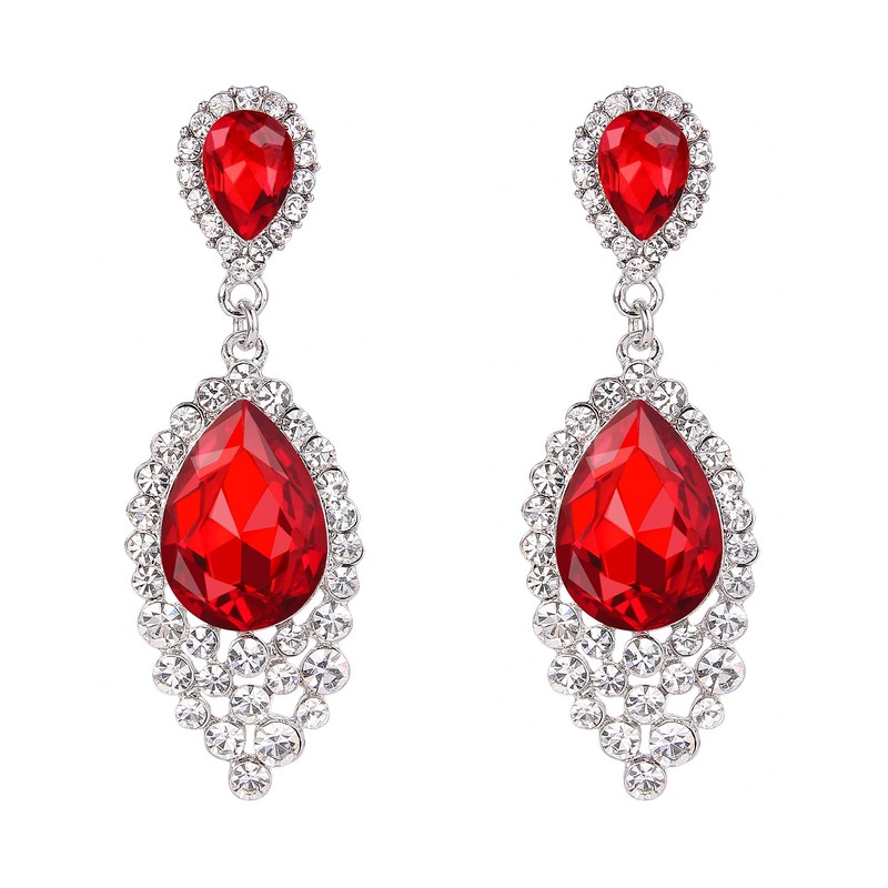BriLove Women's Bohemian Crystal Teardrop Cluster Beaded Chandelier Dangle Pierced Earrings Red