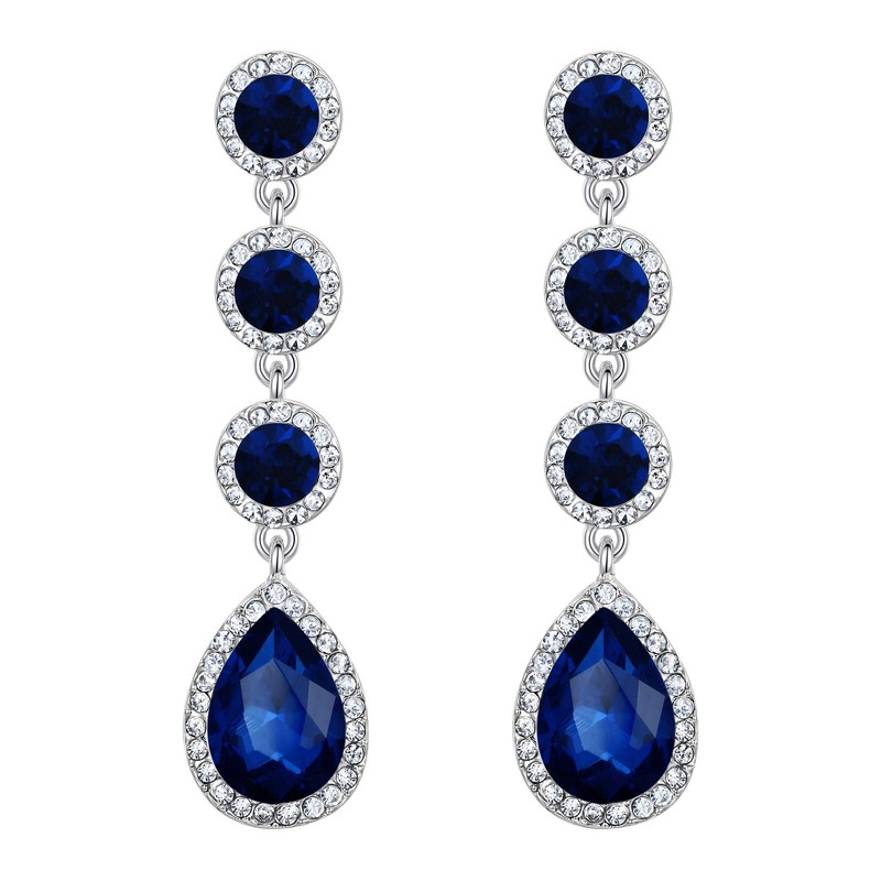 BriLove Women's Elegant Wedding Bridal Crystal Teardrop Chandelier Dangle Earrings Navy Blue Sapphire Color Silver-Tone