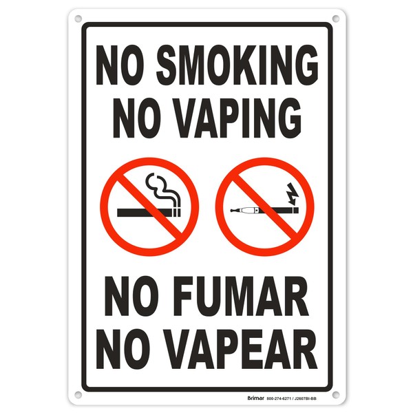 Brimar - 7" x 10" - Bilingual No Smoking No Vaping Sign - .055″ Polyethylene Plastic - Bilingual Text - Bold Text