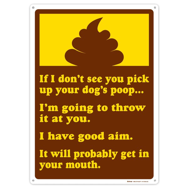 Brimar - 7 x 10" - Pick Up Your Dog's Poop Sign - .055″ Polyethylene Plastic- Easy Installation - Bold And Humorous Design